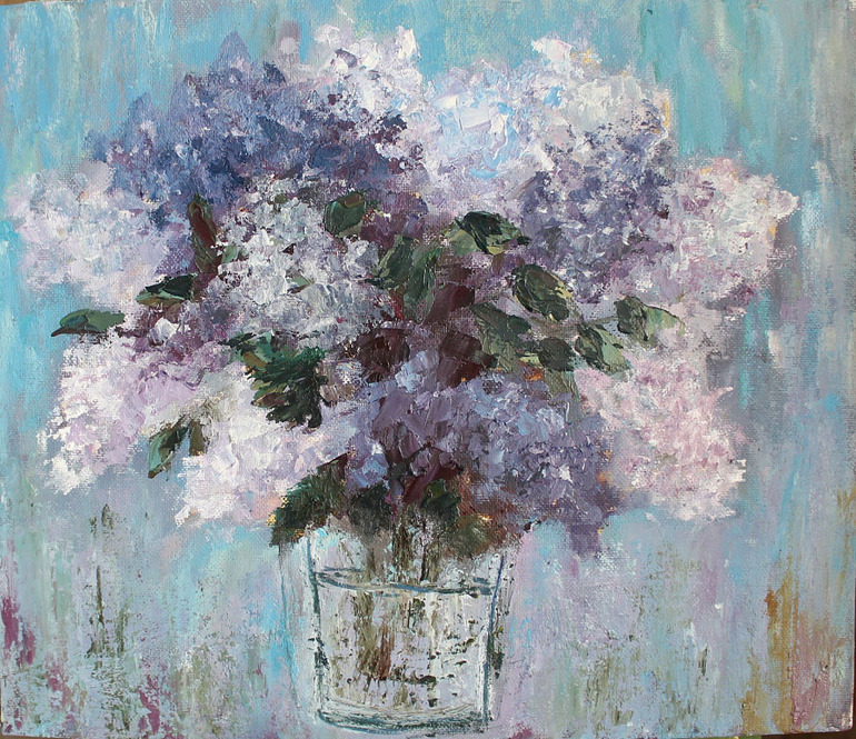 Замученно-измученная сирень))) точнее сирень то ничего. а вот под ней я затерла стол и корзину.. в итоге получилась невнятная стекловидная тара, которую явно просится удлинить вниз, но некуда))