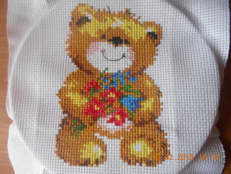 Спасибо,Наташ!Нет,я все рукодельное для себя делаю,для своих)))Вот серию мишек этих вышью,в рамочки оформлю и девченкам своим в комнату повешу,очень уж они им нравятся.А твой пледик уже вяжу))