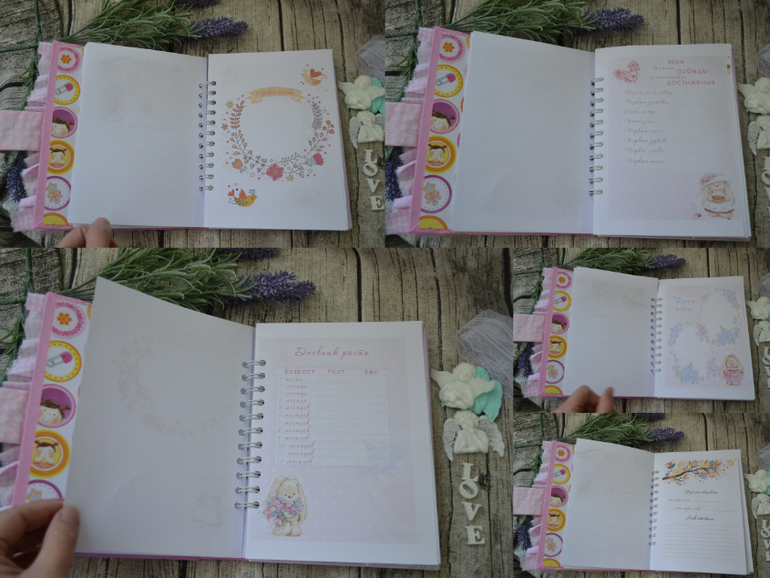 книга именная- Имя в рамочке!все залито 3д гелем,много страниц-страницы с графиками и таблицами,есть место под фото по месяцам 12 штук
