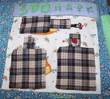 Дверки зоопарка на шнуровке, каждый зверь в своем вольере, вольеры закрываются на пуговку, крючок и кнопочку