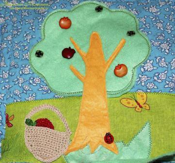 У ежика кнопки-иголки, на них можно крепить яблочки и грибочки. На дереве яблочки на кнопочках, урожай можно собирать в корзинку