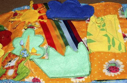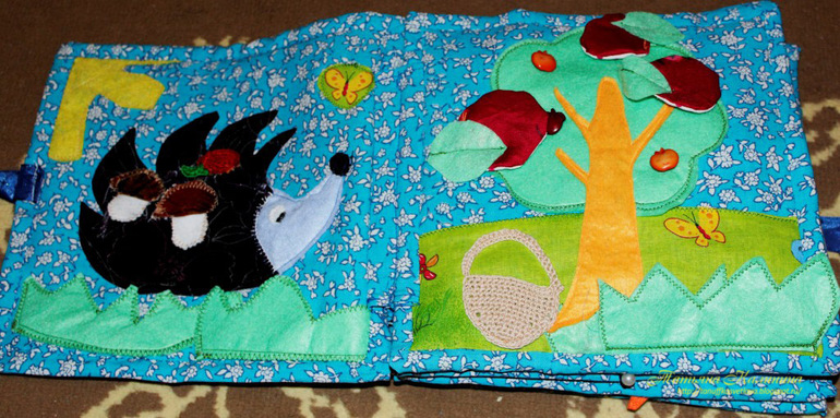 Всем привет!Девушки, долго я любовалась вашими чудесными книжечками и все таки отважилась сшить ее. Прошу не судите строго, развивающей эту книжку можно назвать не только для малыша но и для меня, так как я только учусь шить. Получилась немного криво, но я правда очень старалась. Идеи конечно же подсмотрела тут, какие то взяла из книжки Воскресенкой Ирины, что то сама придумала.