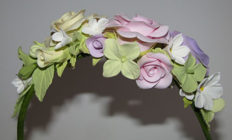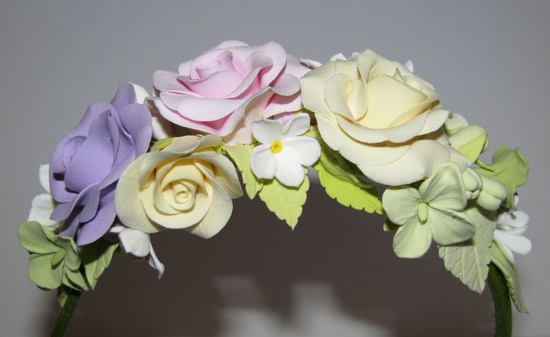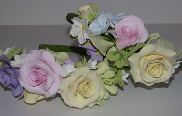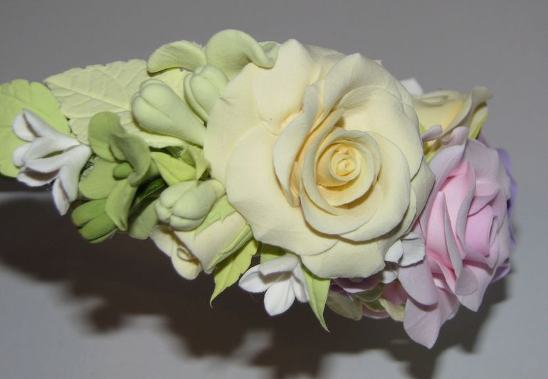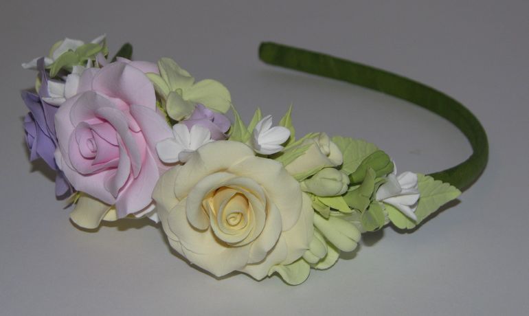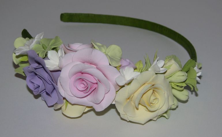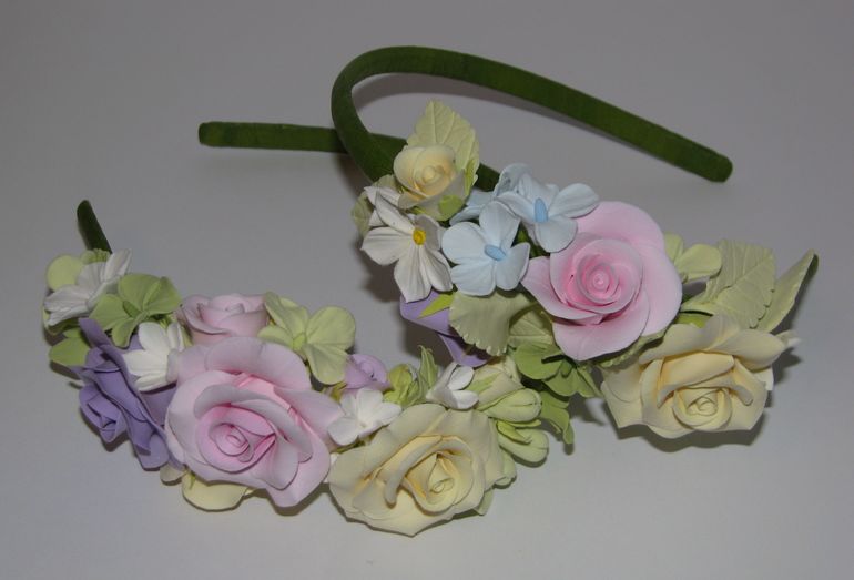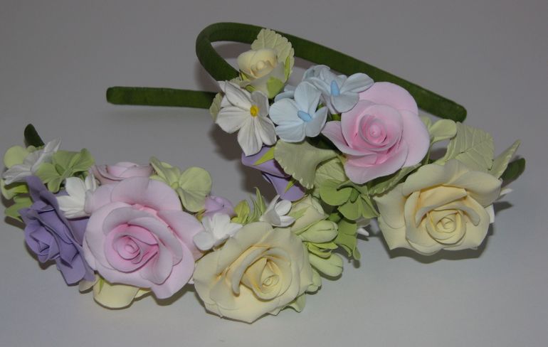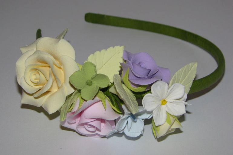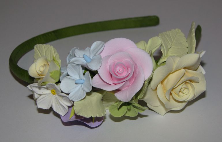 Я начала лепить из полимерной глины благодаря картинкам с ободками-хотела ободки делать дочке,а слепив первую розу на стебле поняла-тяжелая.Может быть для ободков маленькие розы без стебля не такие тяжёлые будут