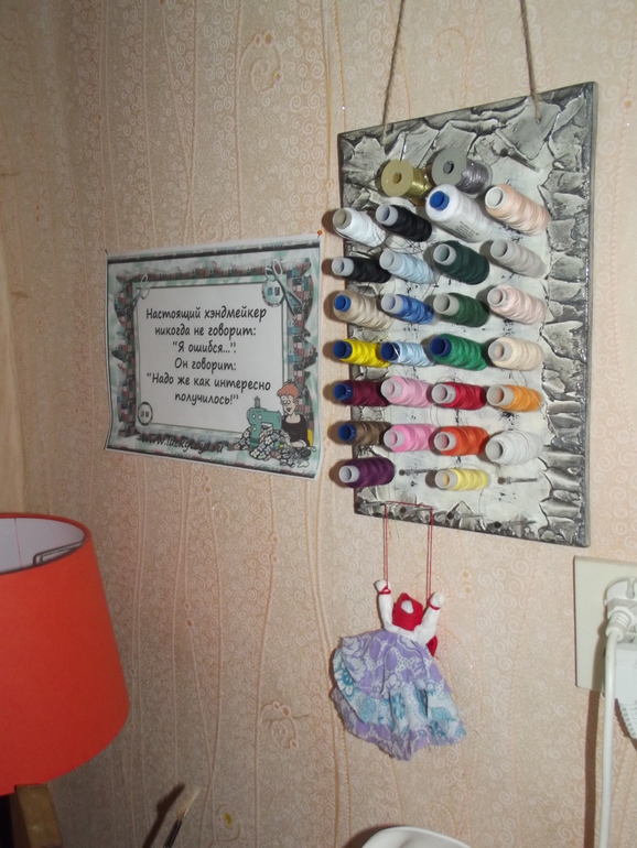 ДекупажДавно-ооо у меня удже висит вешалочка для катушечных ниток, совсем простая...
