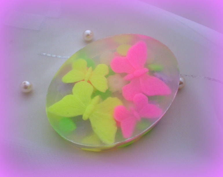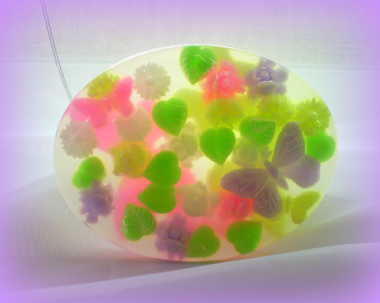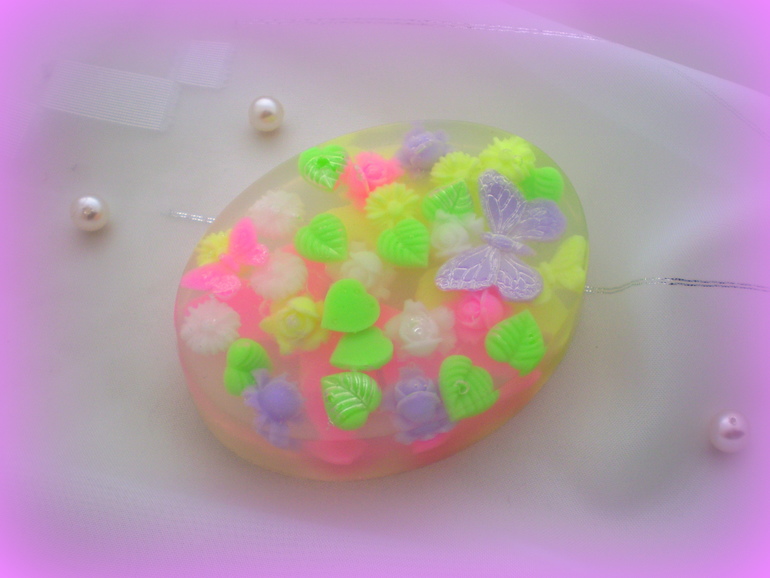 Цветочки- листочки-бабочки внутри мыла тоже мыльные: