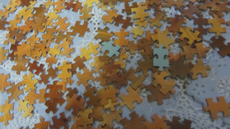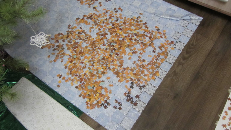 Изделия из бумаги, папье-маше, квиллинг.Давно, года 2 назад Сашкин кресный подарил ему на новый год пазлы на 1500 деталей и только в этом году мы собрались их собрать. Процесс не быстрый, месяц мы с мужем после детского отбоя их собирали. вот процесс и результат:
