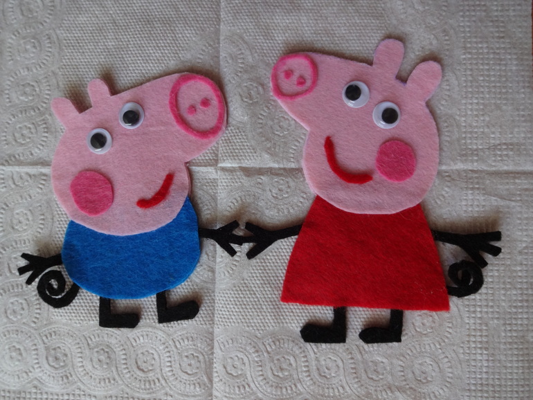 Смотрела-смотрела на картинки и мультик, решила не шить - они в мультике как детские рисунки, очень простые и контурные, не хотелось добавлять что-то от себя. Получились вот такие ребятки-поросятки :) Маленькие - с ладошку размером, уже живут в своем новом доме у хозяюшки.
