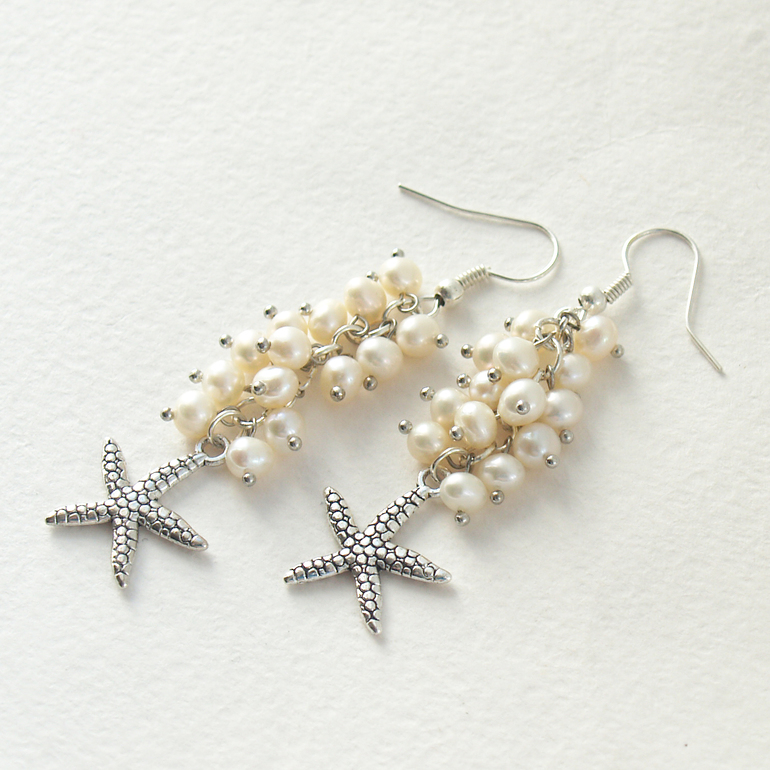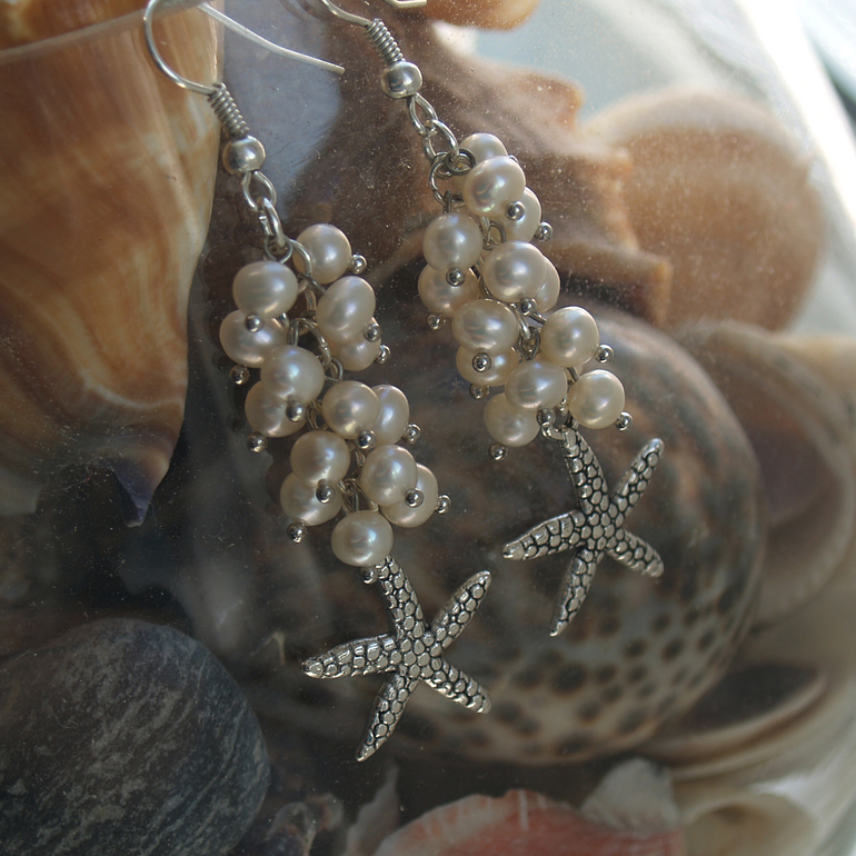 Жемчужные серьги в морском стиле! Украшены морскими звездочками.