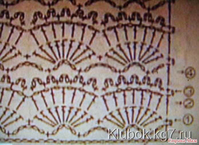 Спасибо. Я имела ввиду филейную сетку, на которой будут последующие рюши. А насчет начала вязания — я говорила про начало ряда (второго после ряда в.п.) Там показан конец — столбик с накидом, а начало обрезано.