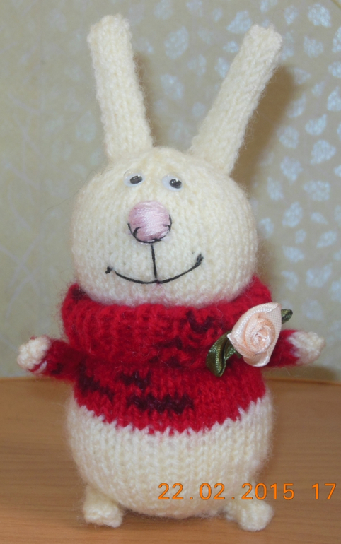 Наконец-то связался мой Новогодний заяц:))) Не, связался он быстро и давно, а вот собрать и сделать мордочку - для меня было почему-то очень трудно! Но, главное, что я доделала и уже зайка живет у девочки *подарен на день рождения* и очень любим:)))