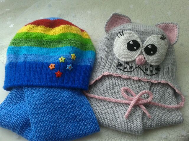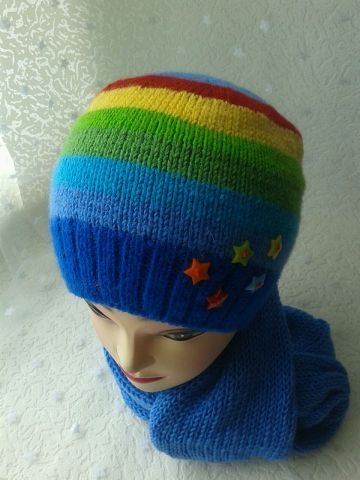 Таня какие замечательные шапочки. Особенно яркая полосатая, у меня сын просит ему связать полосатую яркую, я все не могла подобрать цвета. Благодаря тебе, теперь знаю какую вязать. А какую пряжу ты для этой полосатой шапочки использовала?