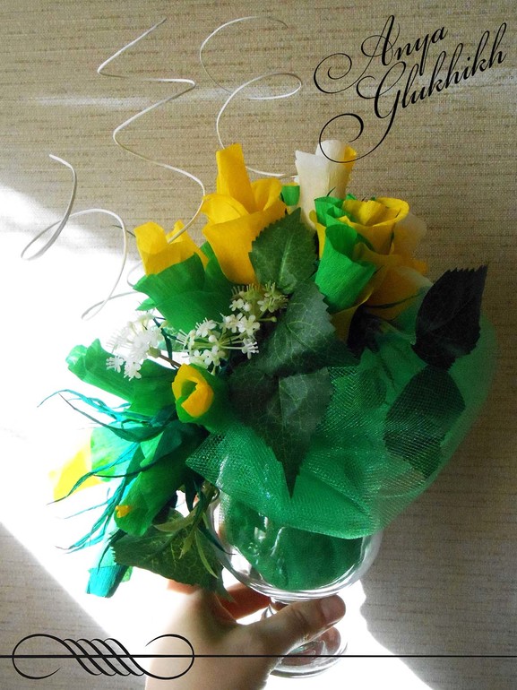 К моему величайшему сожалению сначала накрутила "восьмимартовские" букетики и только потом обнаружила всяческие "подсказочки" и мастерклассы...Поэтому с внешним видом как-то определилась,но вот "внутренний мир" моих поделок - дело тёмное...Дарить буду родным, предупреждать - чтобы не разворачивали!!!Про пеноплекс и прочее было мне неизвестно,скручивала и скотчем, и полиэтиленом, и...ну, в общем,девочки, если кто скинет ссылочку на хорошую "внутрянку" - заранее спасибо ;-)