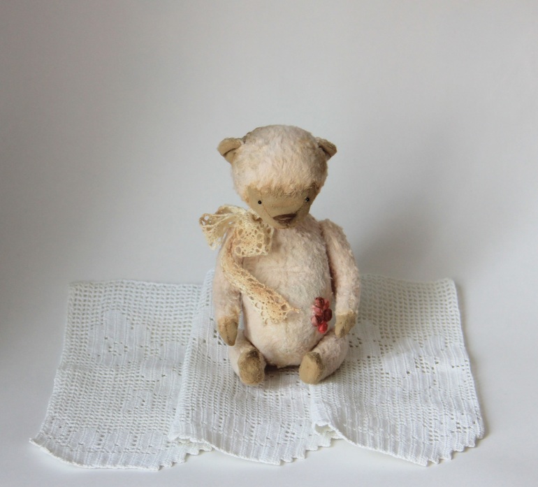 Тедди: мишки и их друзья.22 февраля я посетила МК Таисии Клонингер, очаровательной рукодельницы из Владимира. Таисия сама весна - юная, позитивная, полна идей. Шили винтажного, старенького мишку из вискозы. Попробовала набивать опилками, узнала, как Таисия старит и тонирует игрушки. Вот кого сшила в итоге я: