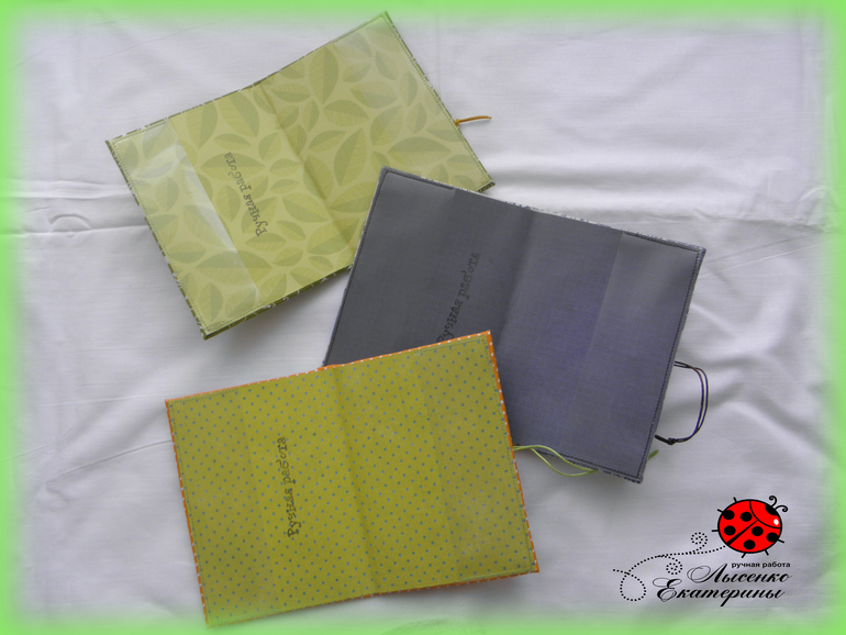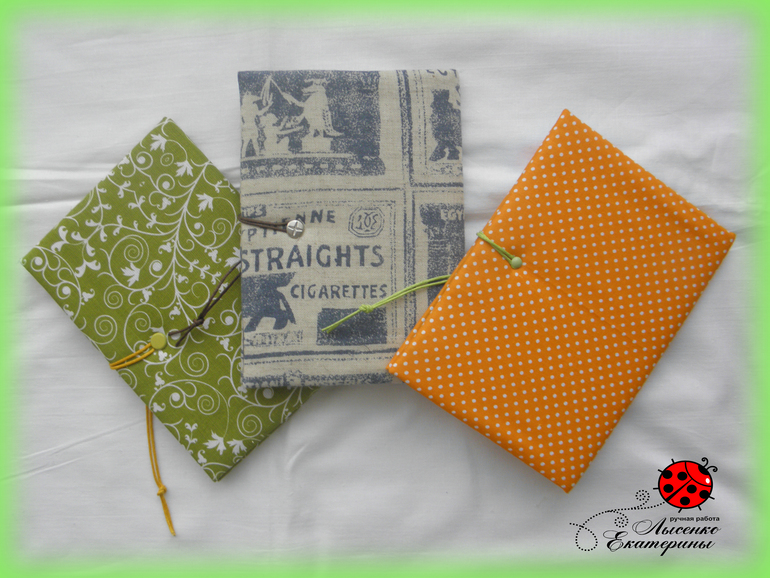 Все обложечки проложены флисом для мягкости и обтянуты хлопком.Закрываются на вощёный шнурок.
