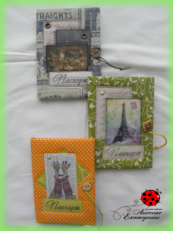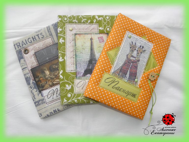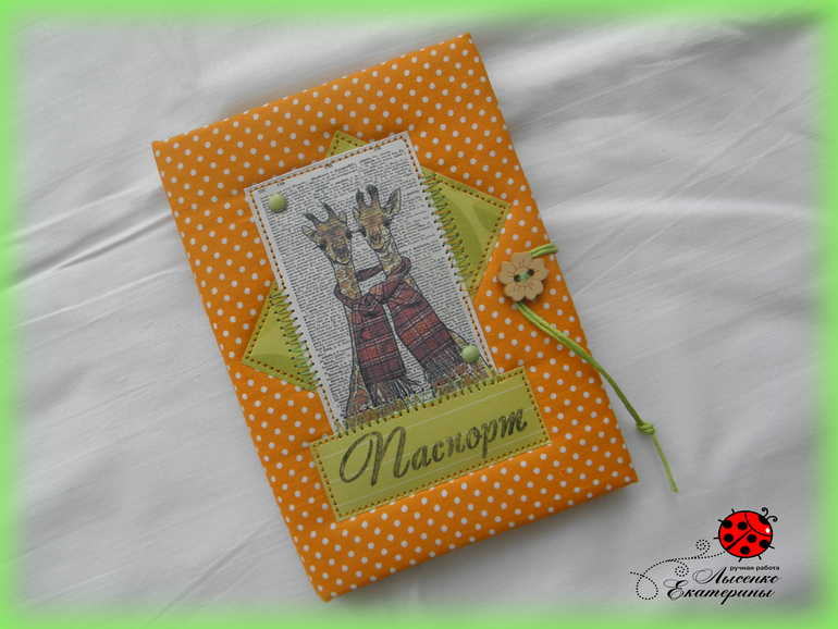 спасибо,Ирочка)да,жирафья обложечка выбла очень яркой))да можно конечно на всё,что угодно сделать.Только смотря какая книга,в мягком или в твёрдом переплёте.Если в мягком,то такую же как и на паспорт-жёсткую,на основе картона,а если в твёрдом,то просто тканевую обложку можно сделать,проложив синтепоном или флисом для мягкости и приятного объёмчика)