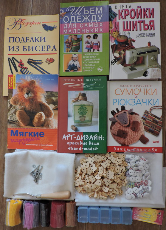 Разобрала свои рукодельные запасы и нашла то, чем уже пользоваться не буду. Может, кому-нибудь пригодится? Есть материалы для кукол, пряжа, ткани, ленты, салфетки, книги по рукоделию...