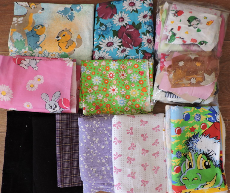 - вторй ряд - хлопок германский, разные кусочки, от 20см*30см до 50см*1м;