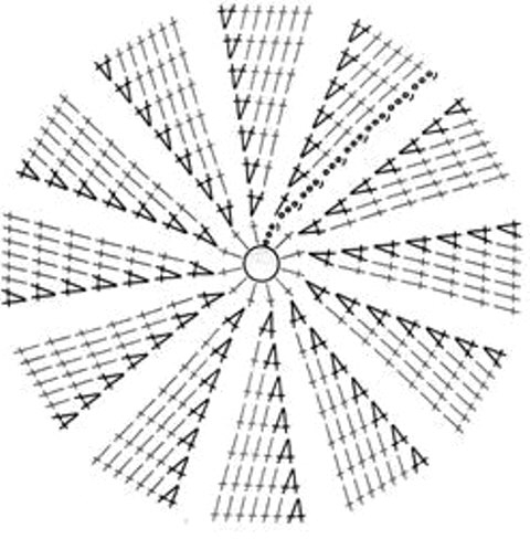 Так вяжите дальше по аналогии. Там же видно,сколько надо прибавить будет, чтобы донышко было шире. И замеряйте после каждого ряда диаметр, пока не дойдете до нужного
