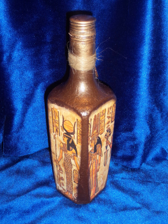 ДекупажКогда готовилась к мастер классы на бутылке с детьми - экспериментировала что лучше наносить грунт или акриловую краску .... грунтом покрыла что ж бутылке стоять .... раз и получилась бутылочка