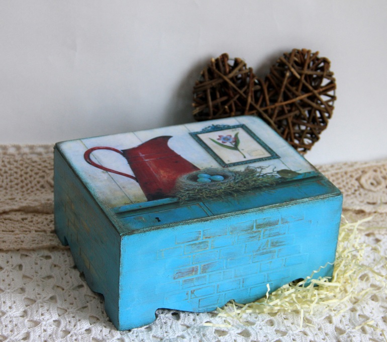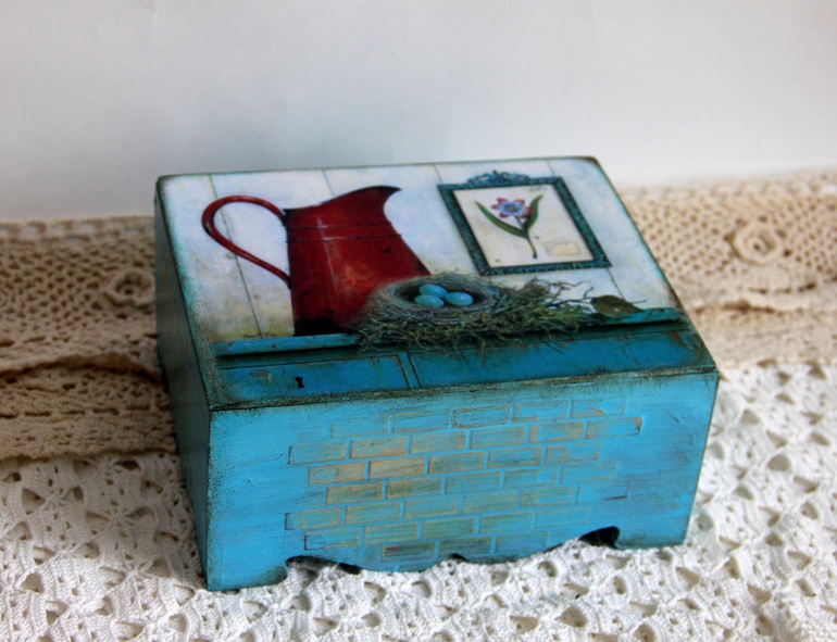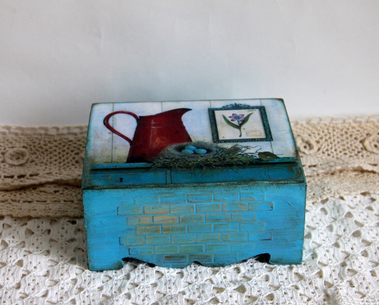 Боже мой, шкатулка отпад, а за бирюзовый плюс 100 баллов! Как подобрала то в тон в тон! Я в восторге. И кирпичики потерла вот то, что нужно. СУПЕР!