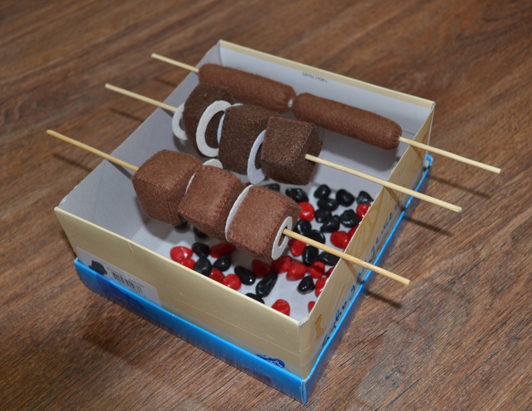 Классно! Тоже первый раз вижу игрушечный шашлык, замечательная идея! А как Вы дырочки в нем сделали?