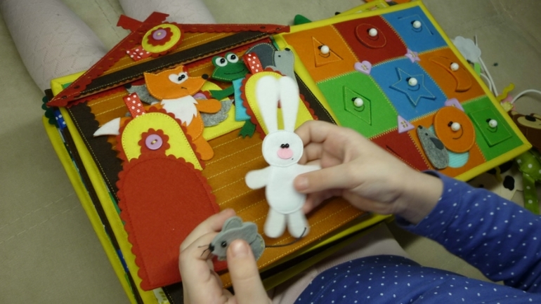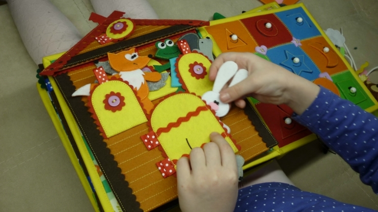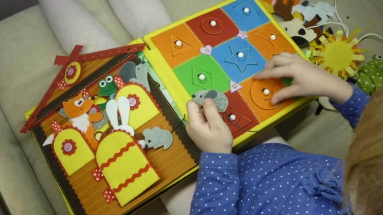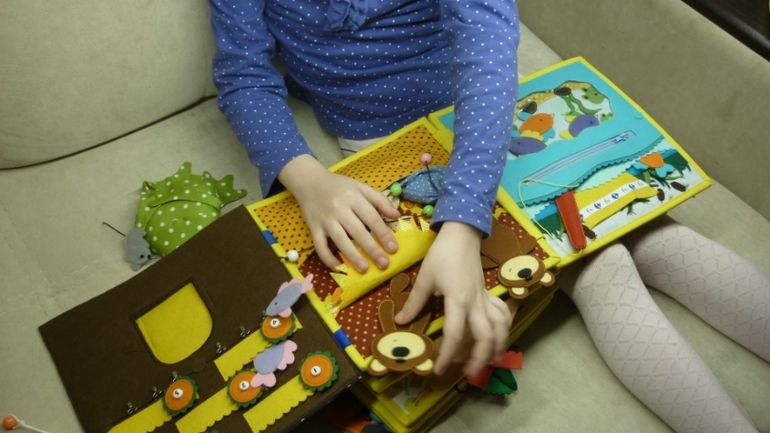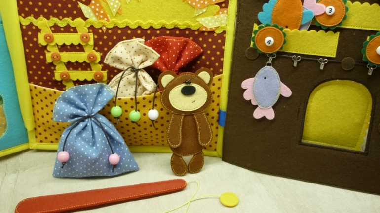 Мешочки тоже тактильные в одном крупные бусины(ничего не развяжется и не выпадет, все надежно застрочено), другой мягкий, третий шелестит.
