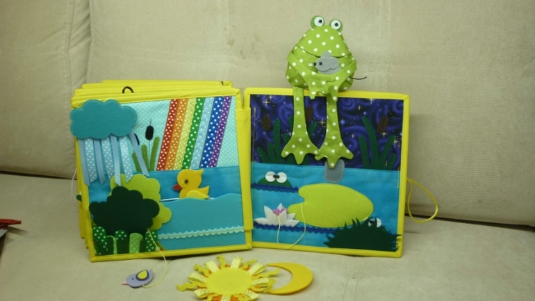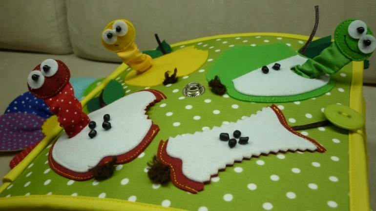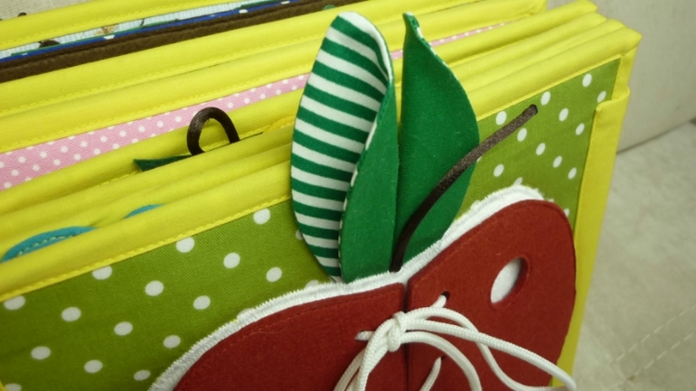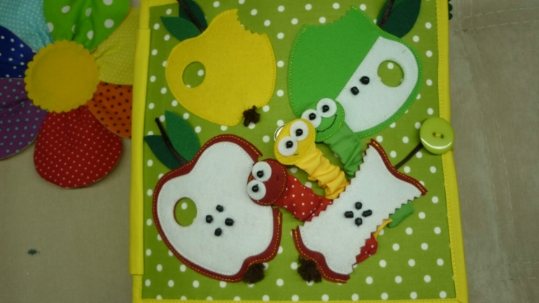 Сшилась еще одна книжечка как "Для Алисы", по просьбе Ирины добавились яблоки с разноцветными червячками на обложку под съемный цветочек и лягушка заменилась на мягкую съемную, в лапках которой магнитики. Фоток далее очень-очень много)