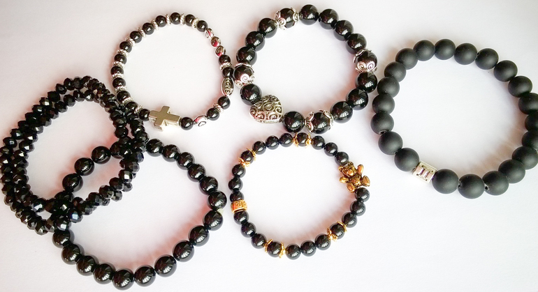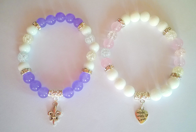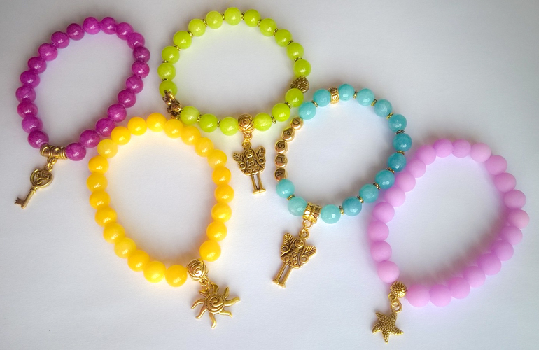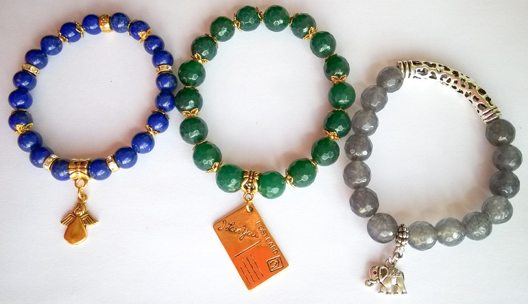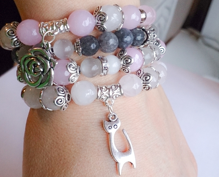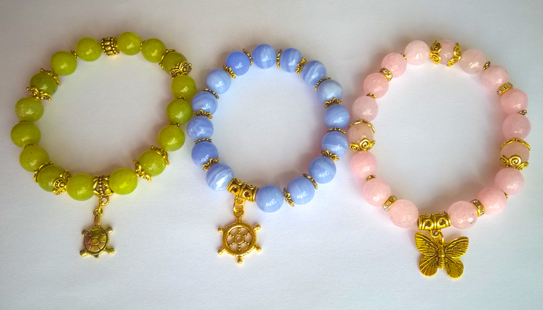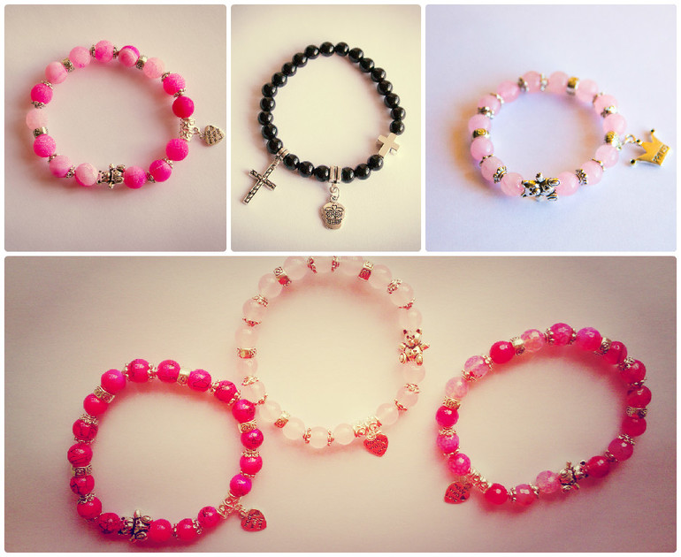 Браслеты изготовлены из натуральных камней, с различными вставками и подвесками.
