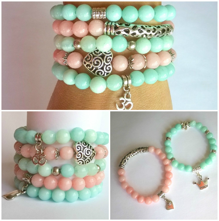 Бижутерия для слингомам. Слингобусы. Грызунки.Браслеты изготовлены из натуральных камней, с различными вставками и подвесками.