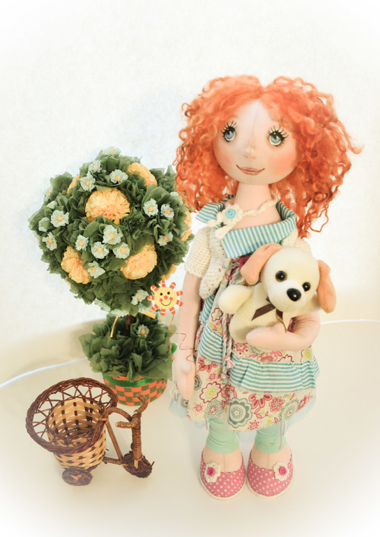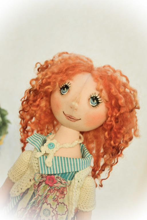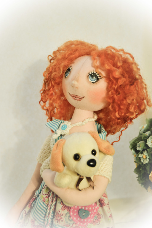 Давненько я сюда не заглядывала. Вот решила исправиться. И конечно же познакомить вас с очаровательной девочкой. Ростом куколка 45 см. Рыжая, застенчивая с любимой игрушкой в руках.