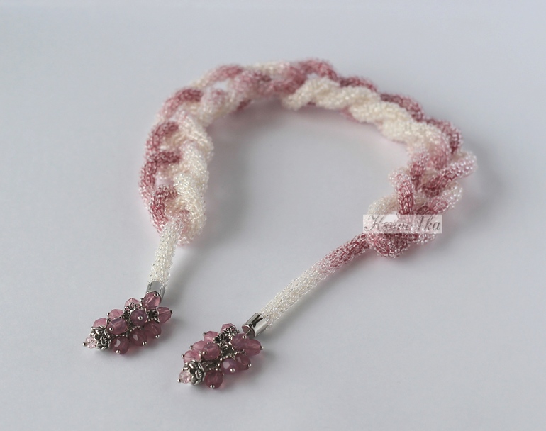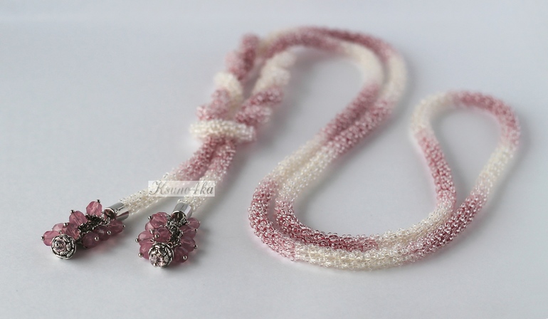 Поэтому начну с лариата "Пепел розы". Снова использовала полюбившуюся мне технику "турецкого" жгута.