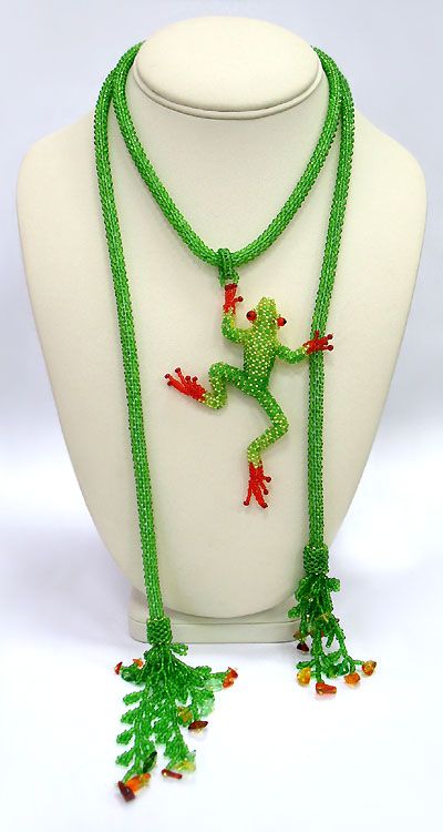 Полгода назад наткнулась на просторах инета на подобное украшение.Вязка напоминала жгутик,а на жгутике этом "сидело" укршение...австралийская лягушка(тоже из бисера).Я "заболела" этим украшением,но не смогла найти того,кто смог бы такое чудо воспроизвести)))А сейчас...казалось бы,что я нашла талантливого Мастера