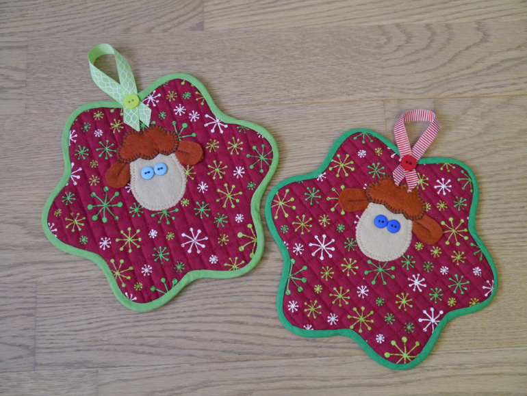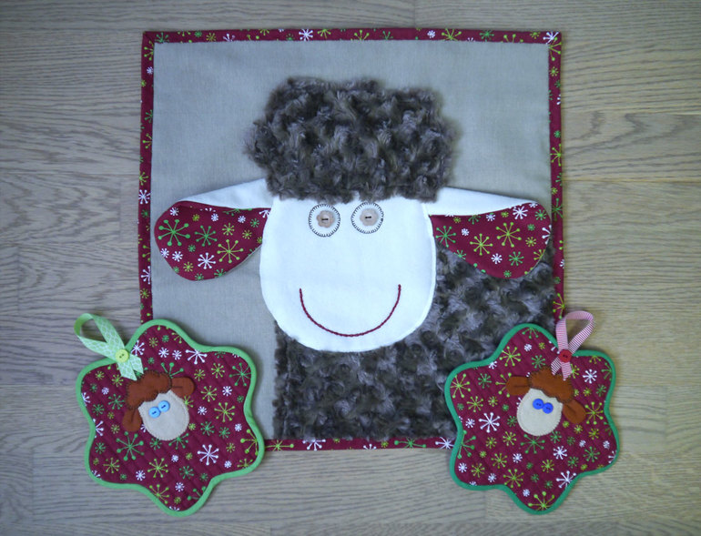 Шитье одежды, выкройки, ремонт одежды, шторы, швейные машины (уже приобретенные)Сшила подарочек. Ну, а т.к. на дворе год Овцы, то и подарок получился с овечьей тематикой: наволочка и 2 прихватки. Мне кажется, получилось достаточно ярко и весело)))
