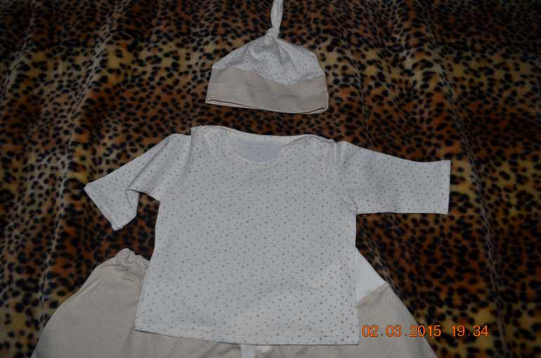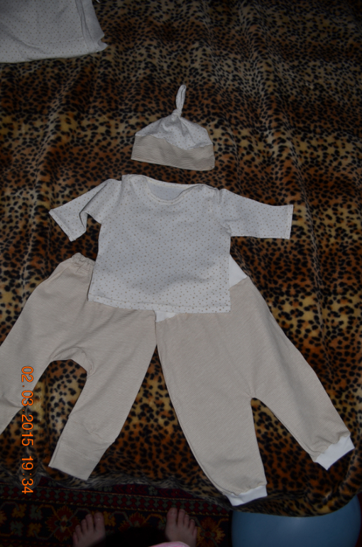 Шитье одежды, выкройки, ремонт одежды, шторы, швейные машины (уже приобретенные)Продолжаю осваивать работу с трикотажем. Сшился костюм из кулирки! Выкройка кофты Бурда, штанишки и шапка оттобре.