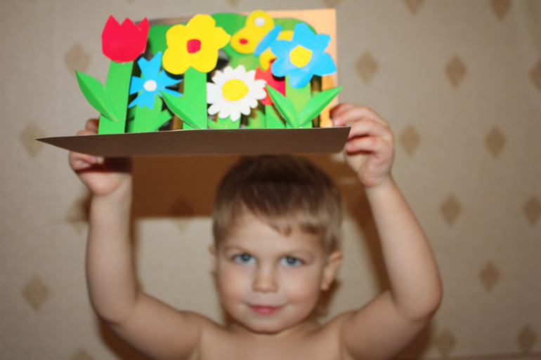 А это поделка в садик цветочки вырезал и приклеивал Захар))