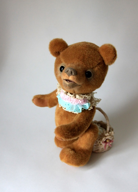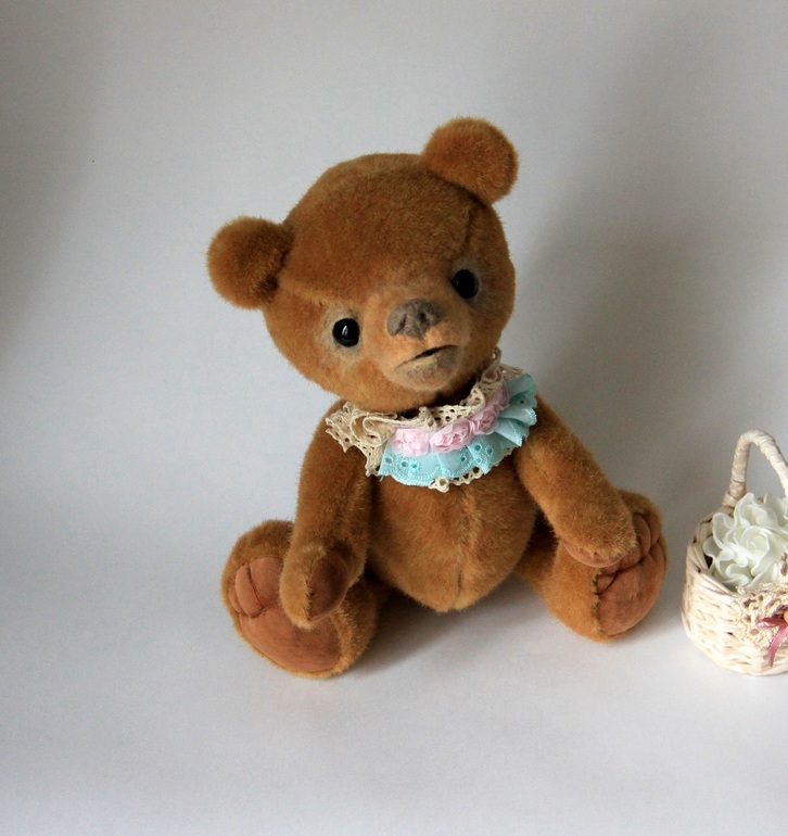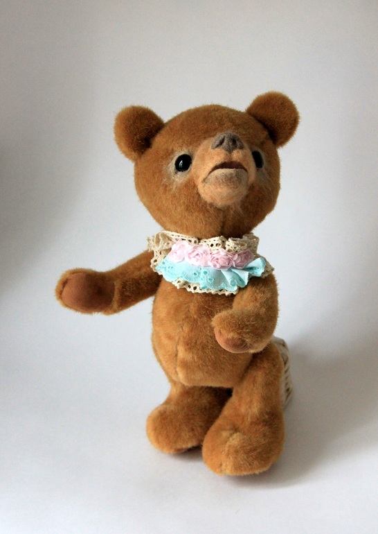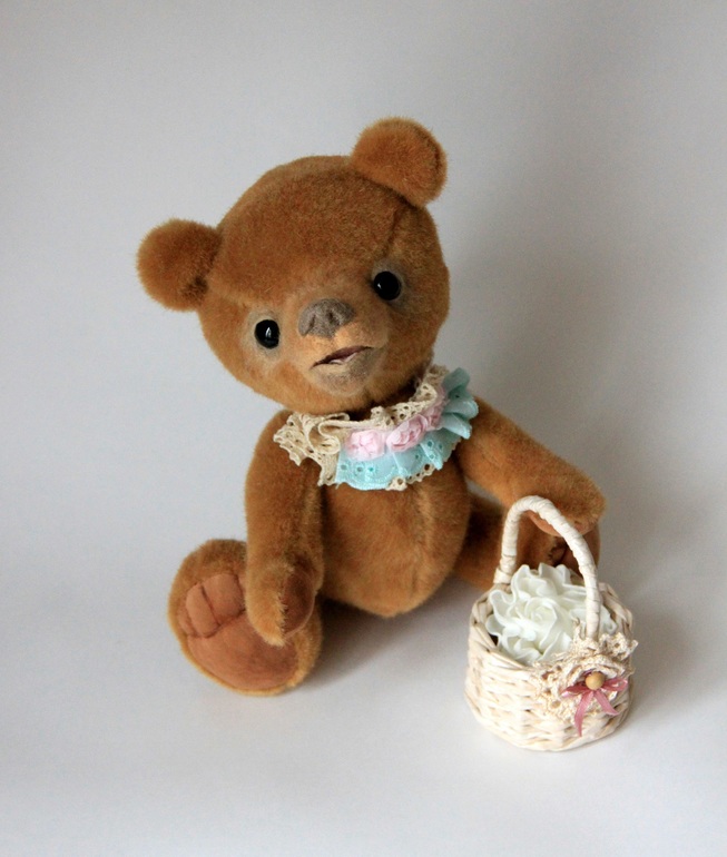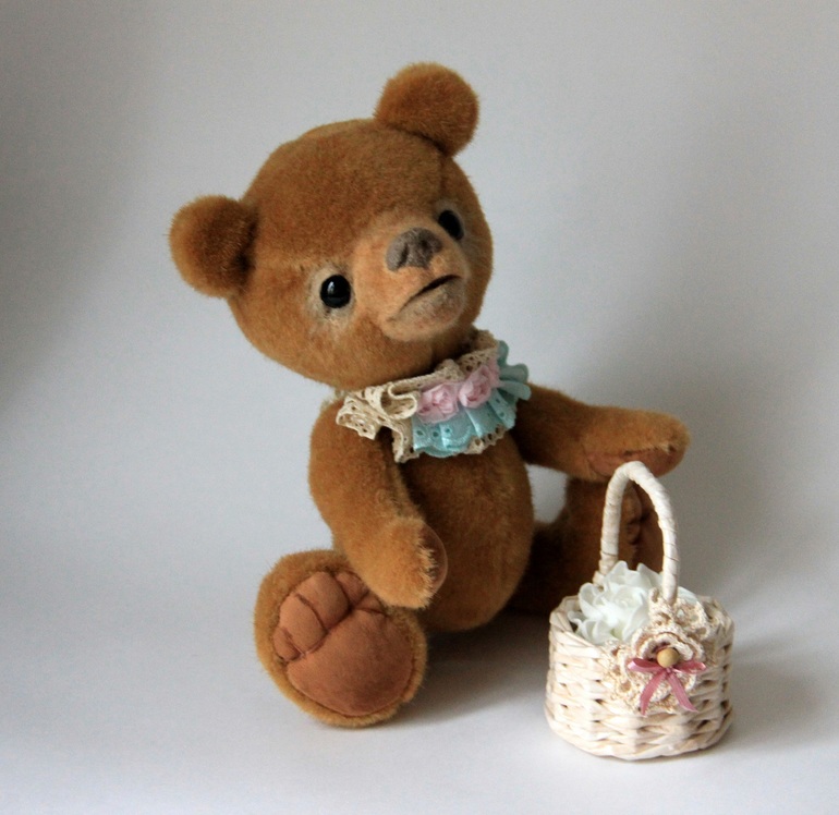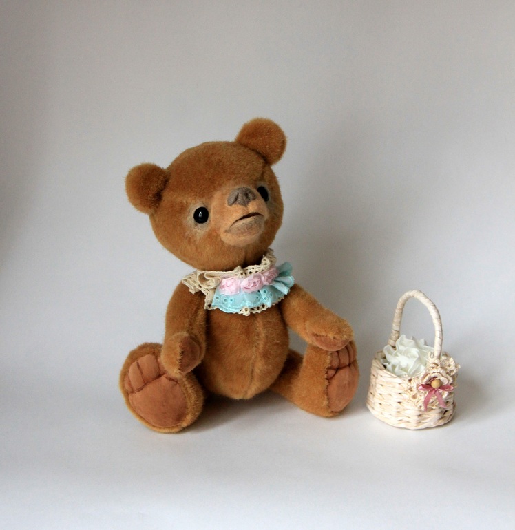 Мишка немаленький, 27 см., а голова за счет привалянной морды вообще серьезных размеров получилась.