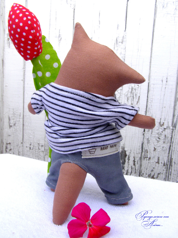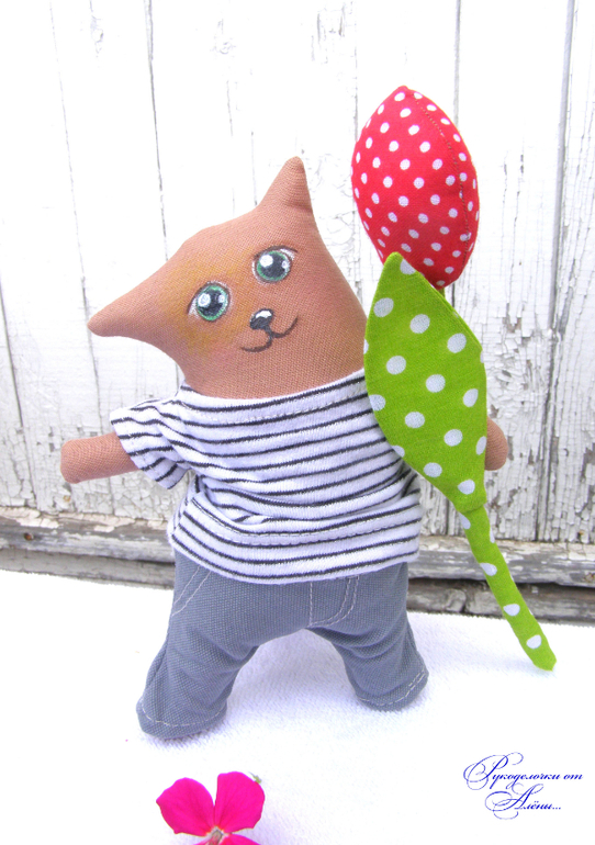 Игрушечный мир - животныеCшился мартовский котик). Это одна из моих любимых выкроек Лилии Венгеровской. Котик 19см., стоит самостоятельно. Тюльпан -20см. У котика уже есть хозяйка).