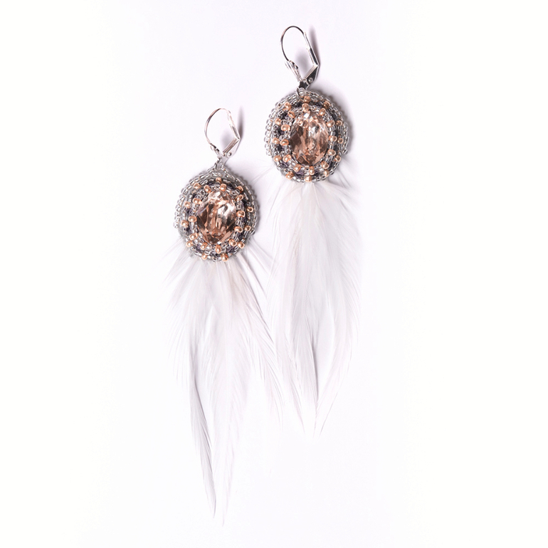 Серьги с перьями и кристаллами Swarovski