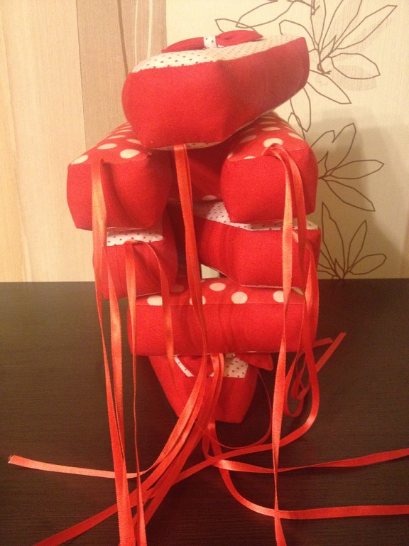 Шитье одежды, выкройки, ремонт одежды, шторы, швейные машины (уже приобретенные)Вот такие подарочки к 8 Марта ,я сделала своим замечательным крестницам. Маленькой которой еще нет и годика вот такие красненькие с веревочками, они смогут украсить ими кроватку.