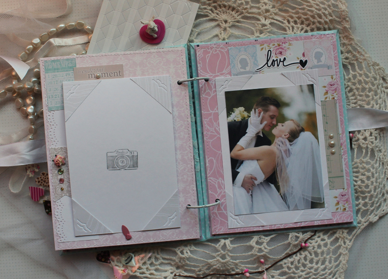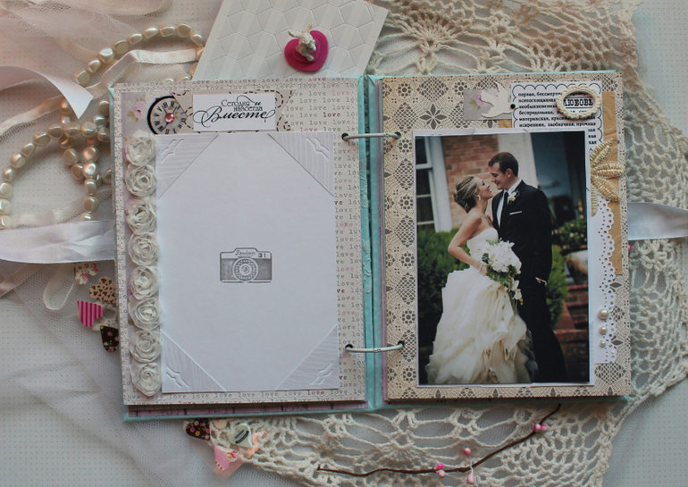 Сегодня я со свадебной работой ,сезон потихоньку начинается :) Очень непривычно после детской тематики перестроится на свадьбу ,но результат стоит того:) Свадебный альбомчик заказала сестренка для своей сестры ,у которой скоро-скоро произойдет важное событие в жизни! Альбом формата 15*20 см, 10 страничек,вместит 20 фотографии 10*15 ,есть карманчик для свадебного СD- диска на заднем форзаце.