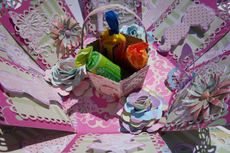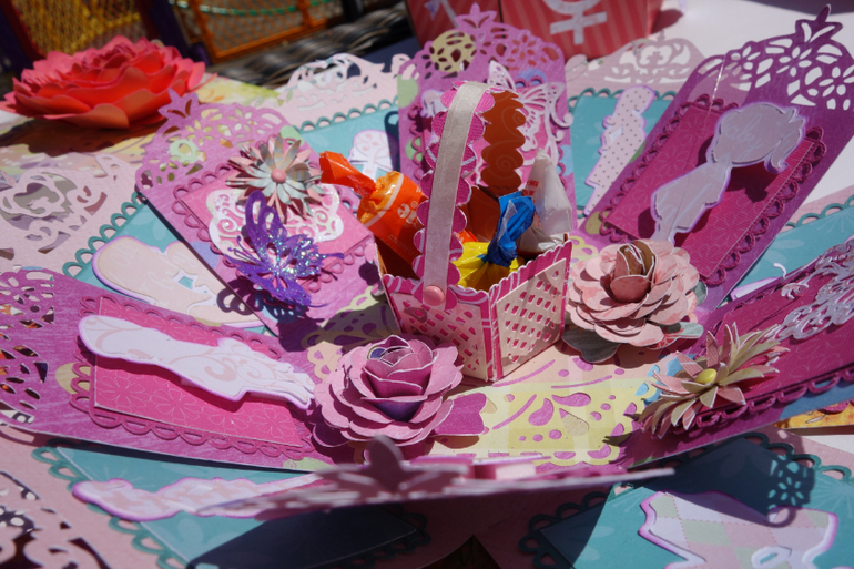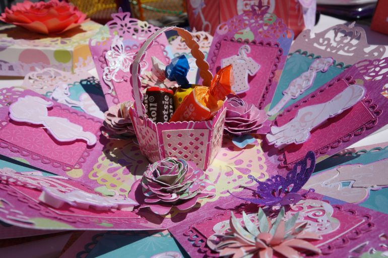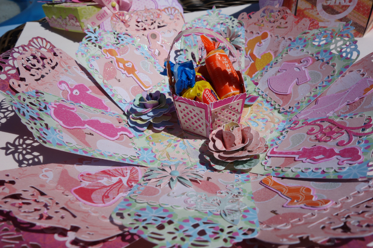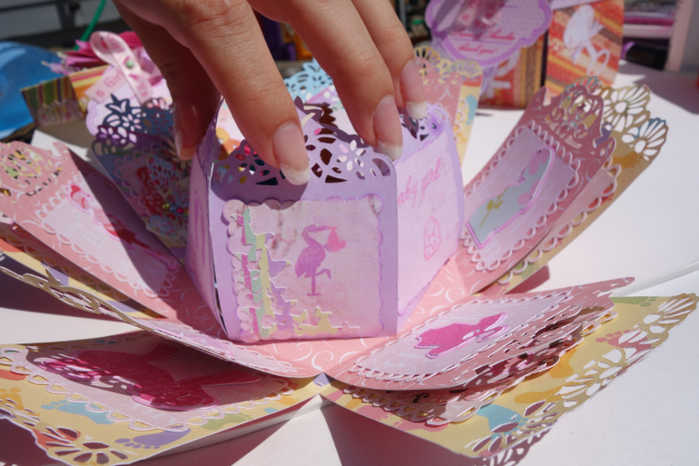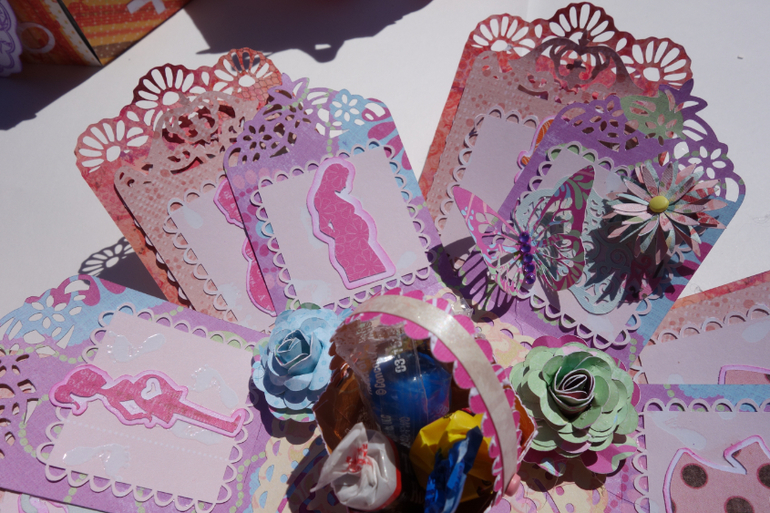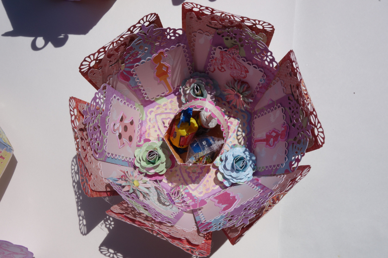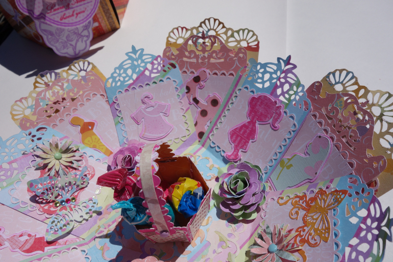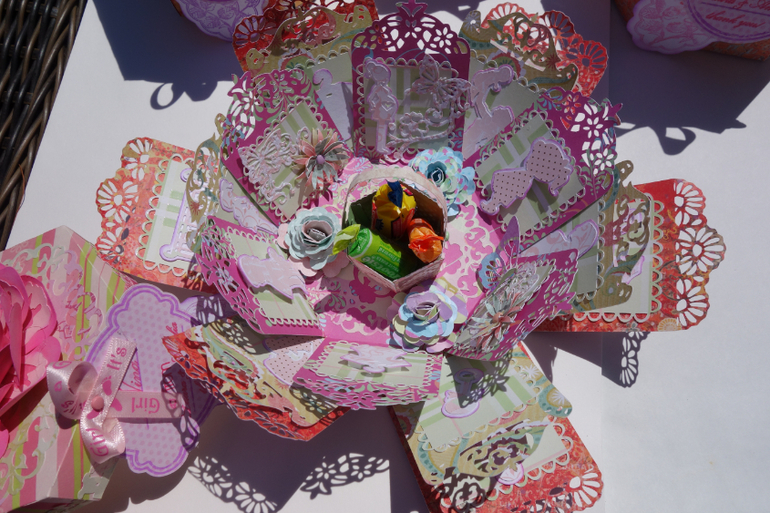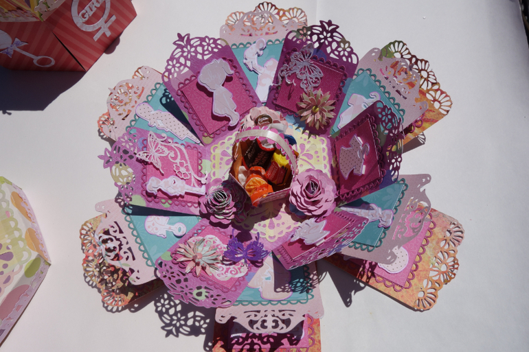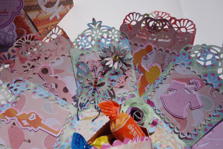 Не знаю, у кого как, а я львиную долю времени всегда трачу на мучительный подбор бумаги, чтобы все сочеталось друг с другом. Ну, и разработка дизайна. Конечно, много времени уходит на вырезание, особенно ажурных элементов, а сборка собственно занимает меньше 10% всего времени. Зато удовольствия сколько, когда получается так, как хотелось!