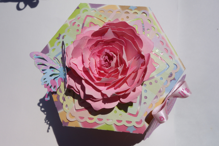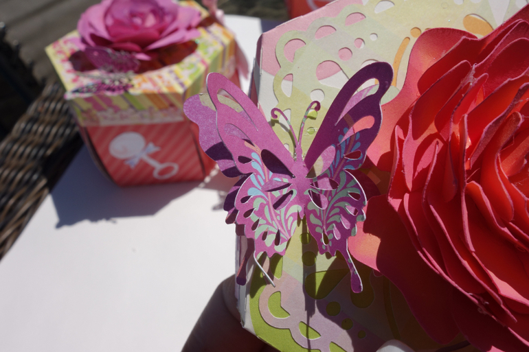 Все коробочки построены по одному принципу, но отличаются друг от друга, как и мои подруги. Я люблю делать подарки индивидуальные, со своим характером, каждый адресован для своей нынешней владелицы. Все от начала и до конца выполнено вручную, без заготовленных материалов. Дизайн коробочек разрабатывала сама в программе Silhouette Studio, кое-какие мелкие элементы дизайна скачивала/покупала в Silhouette on-line store (лепестки роз, к примеру, и дизайн корзинки). Вырезано с помощью каттера Silhouette Cameo.