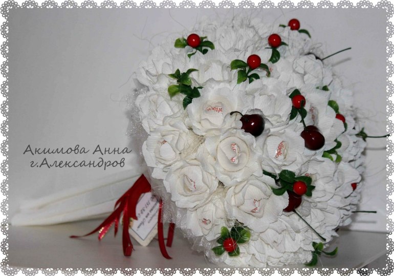 С годовщиной!!!Творческих успехов,мне понравилась "Пьяная вишня" (белый букет с ягодками)-больше всего!!!