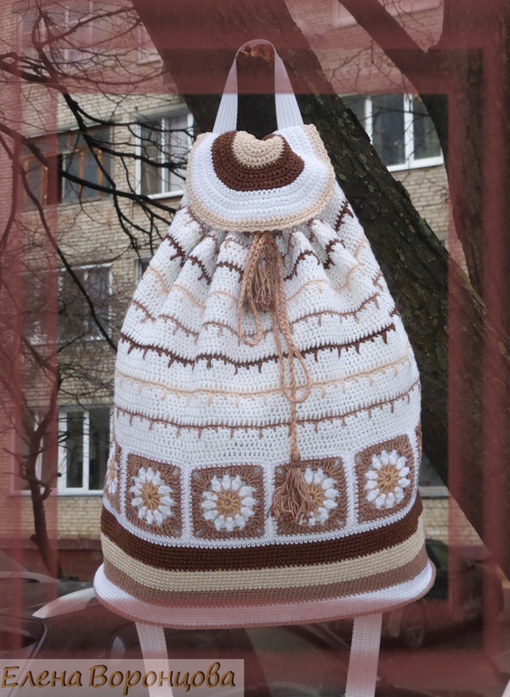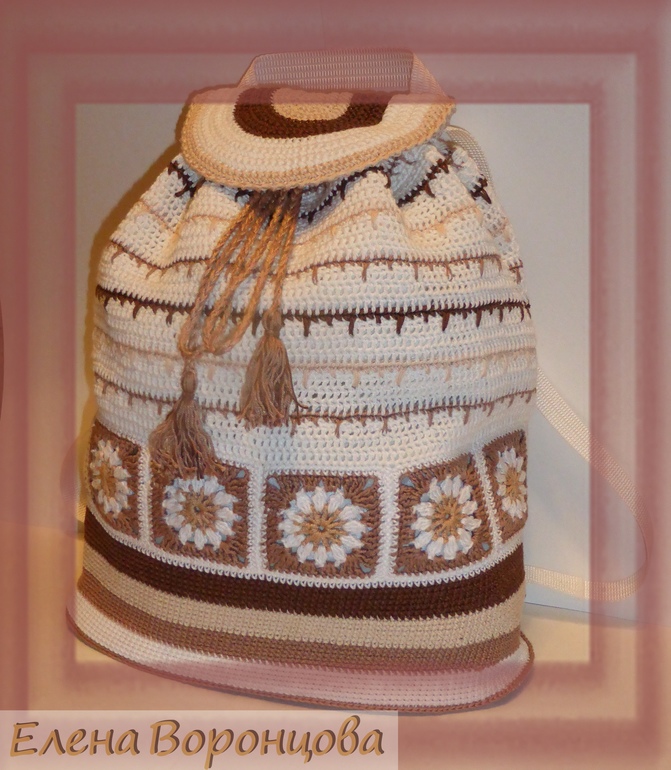 Рюкзак связан из Пряжи Бегония. крючок 2,25 и 2,5. Результатом мы обе остались довольны