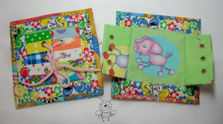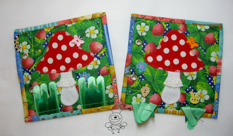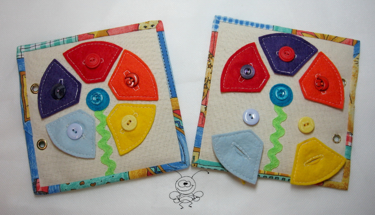 Домик-теремок с застежками: наверху застегивается на кнопку, внизу учимся завязывать бантик.