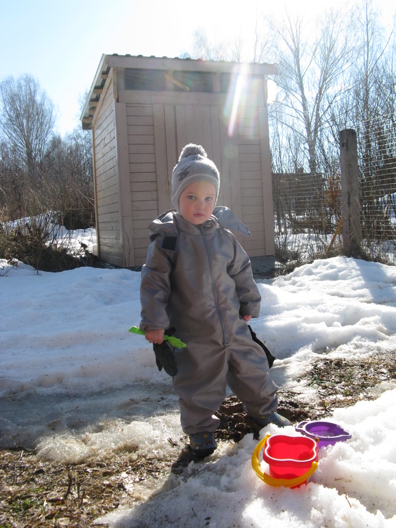 Шитье одежды, выкройки, ремонт одежды, шторы, швейные машины (уже приобретенные)Вот еще один комбез, шила в январе еще. Тоже на вырост, теперь уже слитный, из плащевки с водоотталкивающим покрытием. На подкладе флис. Сегодня сидел на даче в луже, сухой! Муж назвал его скафандром ))