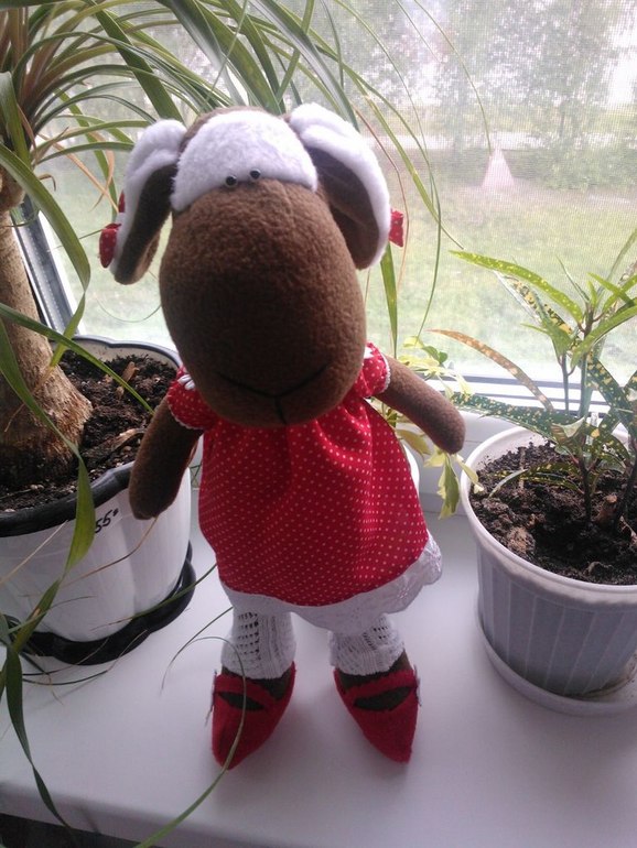 Эта овечка названа сыном (5лет) Софья Андреевна))) Не могу понять почему, но имя ей подходит! Сын с ней не расстается, даже в Болгарию она летала с нами)))