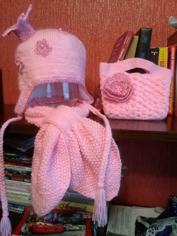 +еще цена за подклад, сумка по объему работы как шапка, т.е. 2000р нормальная цена, если боитесь не согласятся, а подзаработать хочется, возьмите поменьше, я по началу вообще 800р за комплект брала шапка без подклада+шарф))))Комплектик просто прелесть, обожаю такие! Если будет у меня когда-нибудь девочка, обязательно такой свяжу)