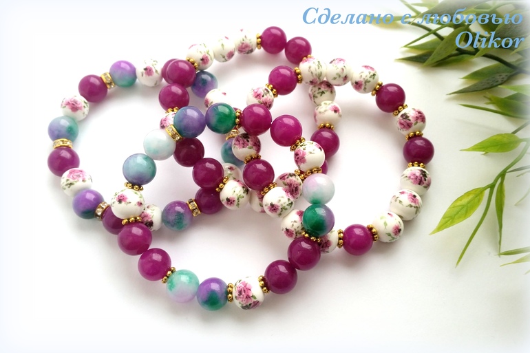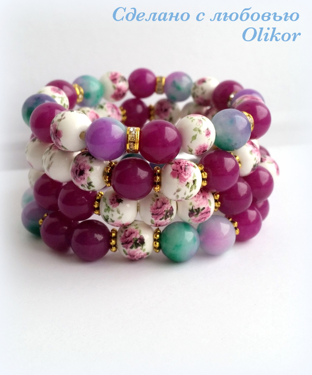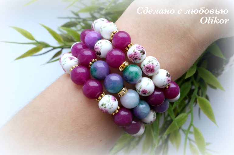 Бижутерия для слингомам. Слингобусы. Грызунки.Новая серия браслетов из керамических бусин с цветочными мотивами: комплект из 4-х браслетов собран из тонированного агата и керамических бусин с пионами. Браслеты на резинке.
