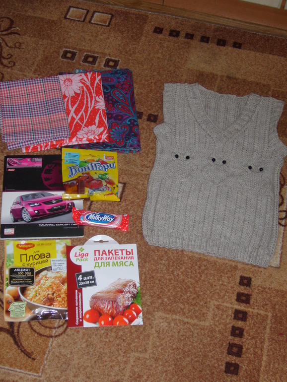 И вот на днях прилетела ко мне посылочка.Уговор был на жилеточку для сыночка,но я как всегда получила еще и подарочки))).